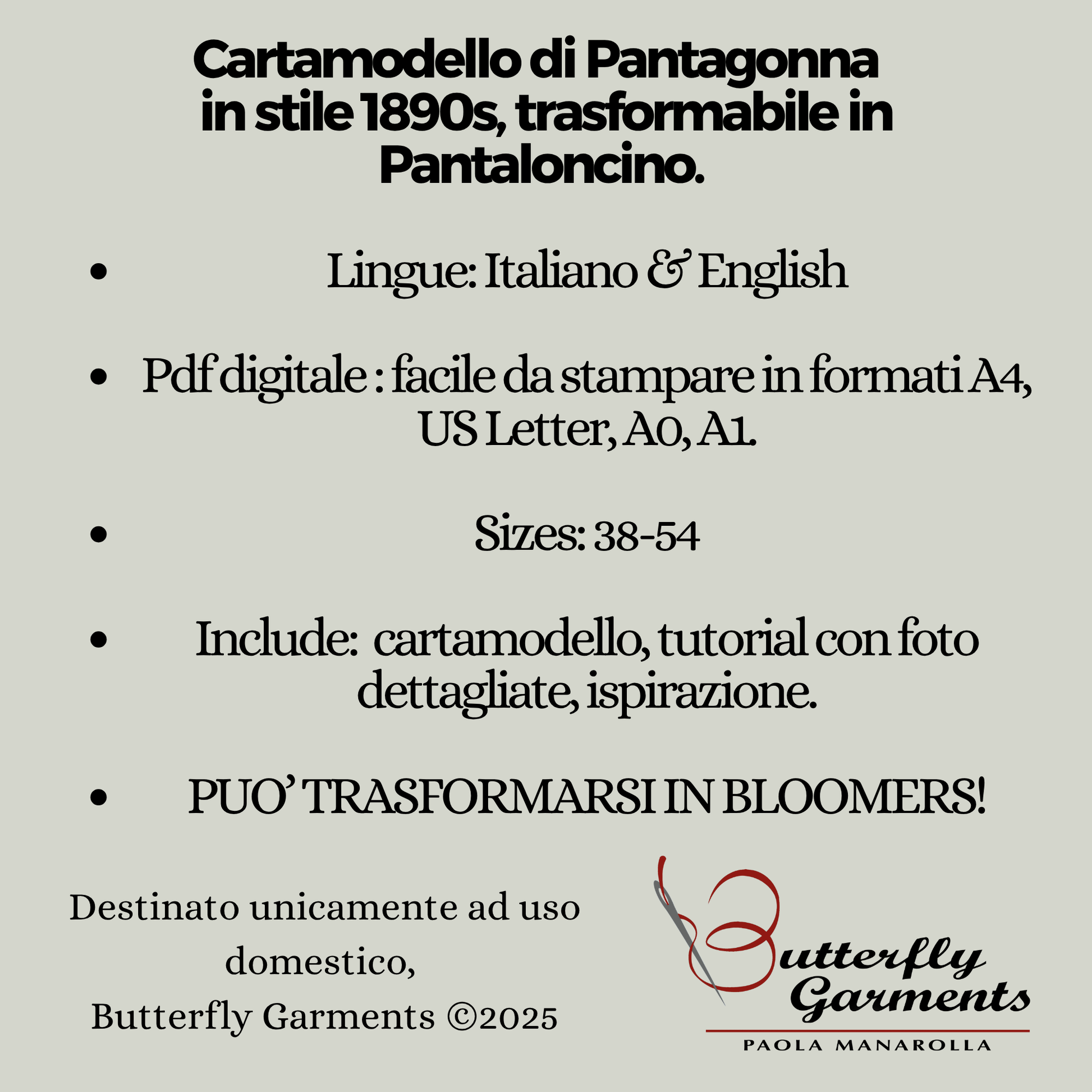 1890 Late Victorian Style Hidden Pants Skirt - Digital Pattern & Sewing Tutorial