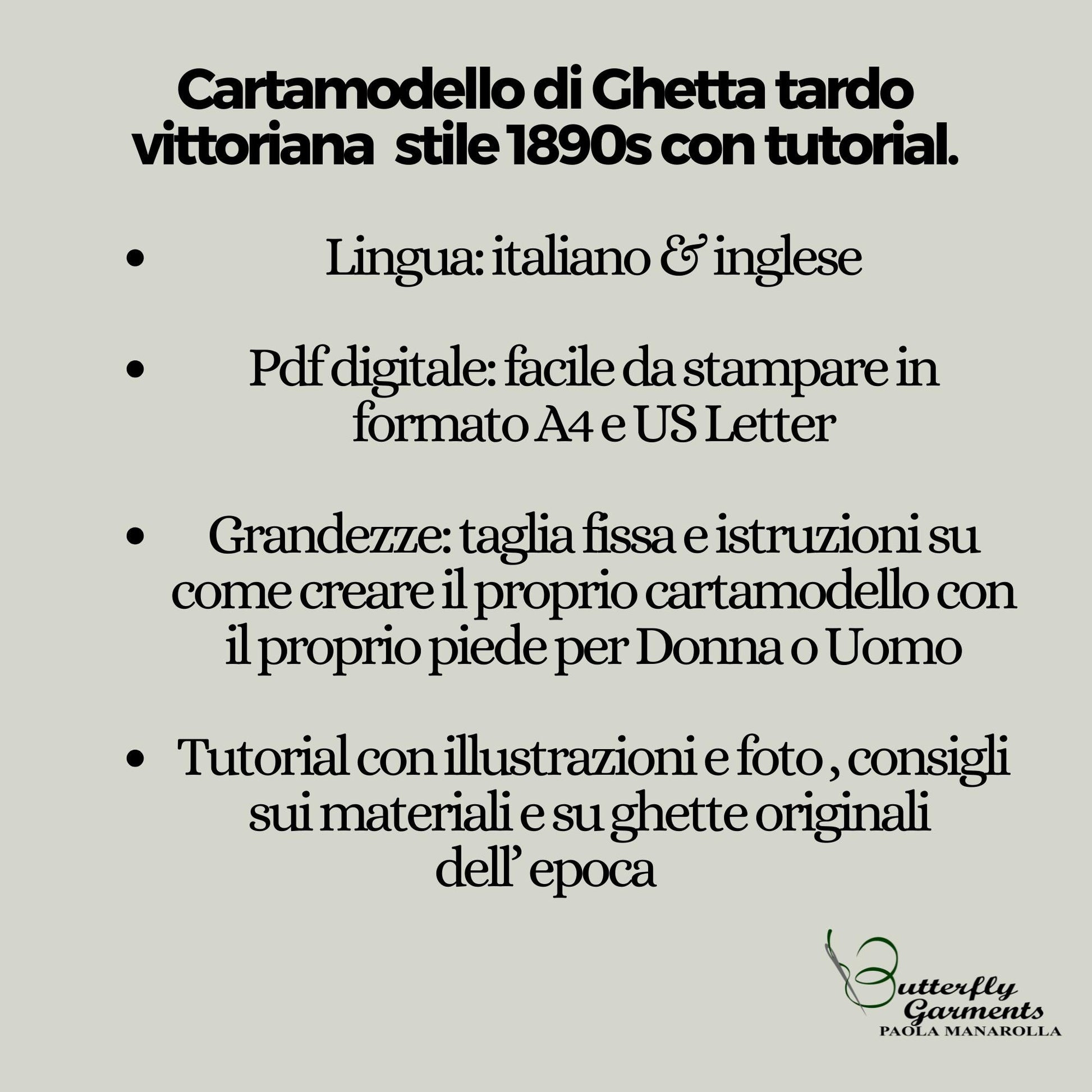 📦 What's Included: • Digital patterns for late victorian spats in PDF format • Complete tutorials with materials list, historical references • Step-by-step photo instructions with detailed text • Print guide with preview formats and sizes chart